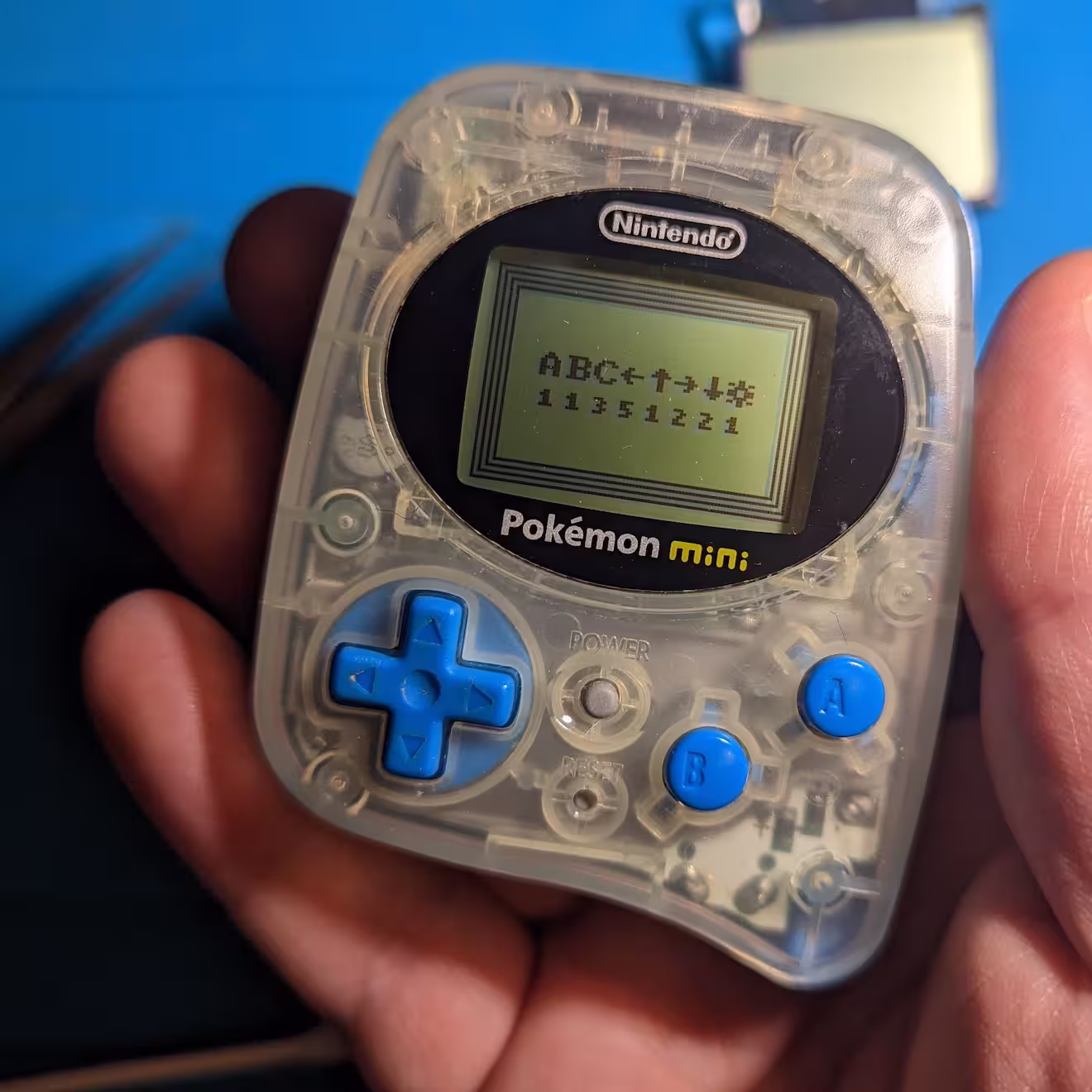 On inspection it looked, internally, very clean - no corrosion or damage. From my experience with Pokémon Mini handhelds, I was wondering if perhaps the power button wasn't getting the signal.