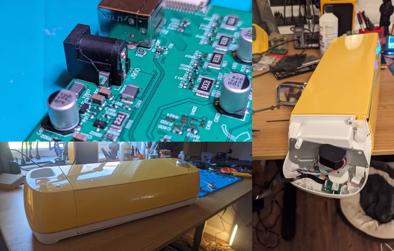 Some careful soldering and lot of replacement of screws and I now have a working Cricut. Tidy.